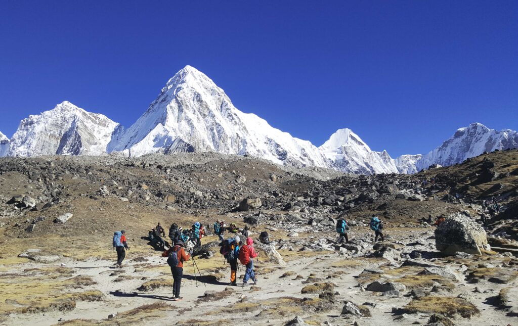 Climbing Kala Patthar, meaning “Black Rock,” is one of the most rewarding parts of the trek. It offers the best panoramic view of Mount Everest and surrounding peaks at sunrise. The climb is short but steep, and the view at the top is absolutely breathtaking. Watching the golden rays hit the summit of Everest is a bucket-list experience for every trekker.