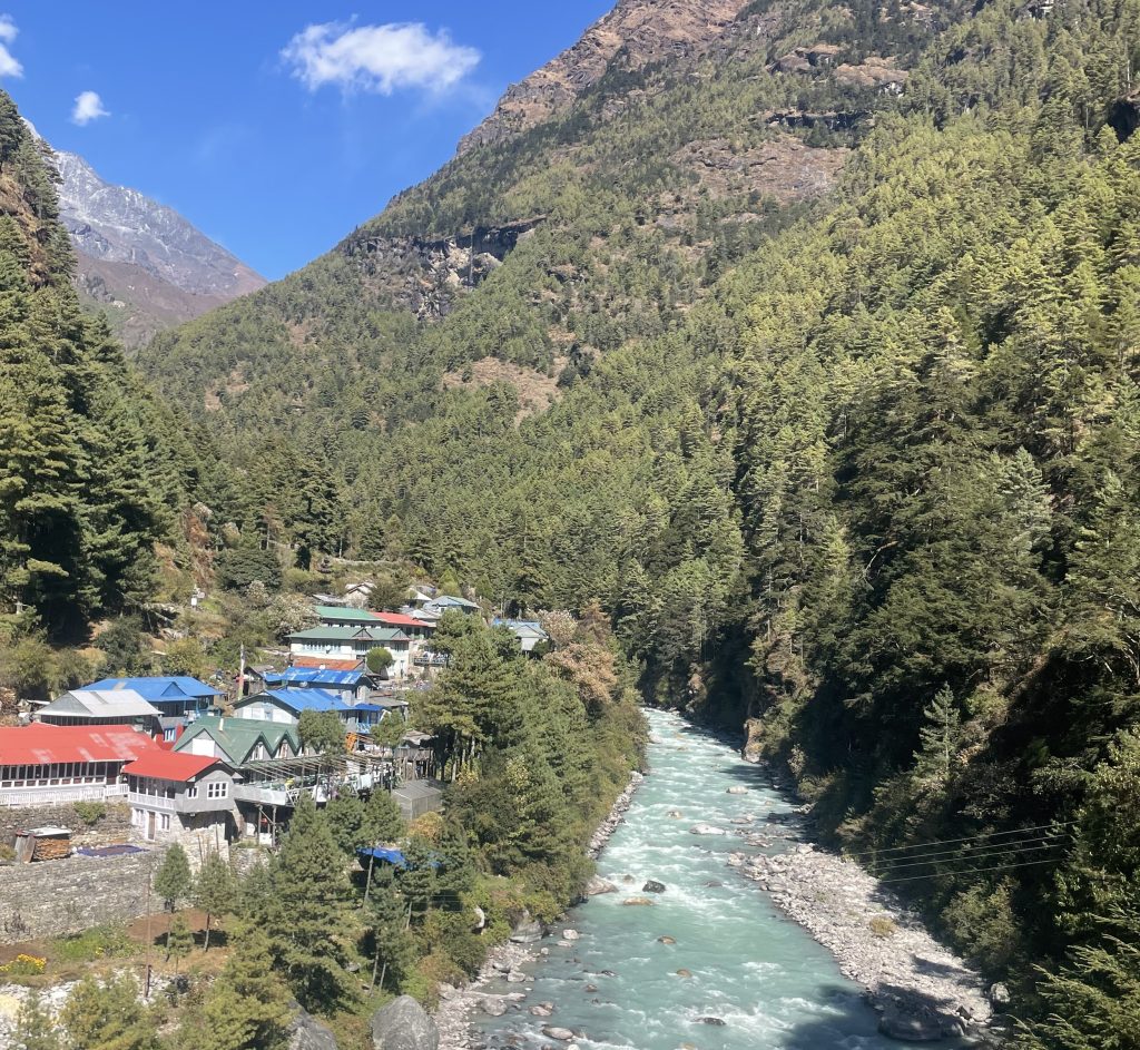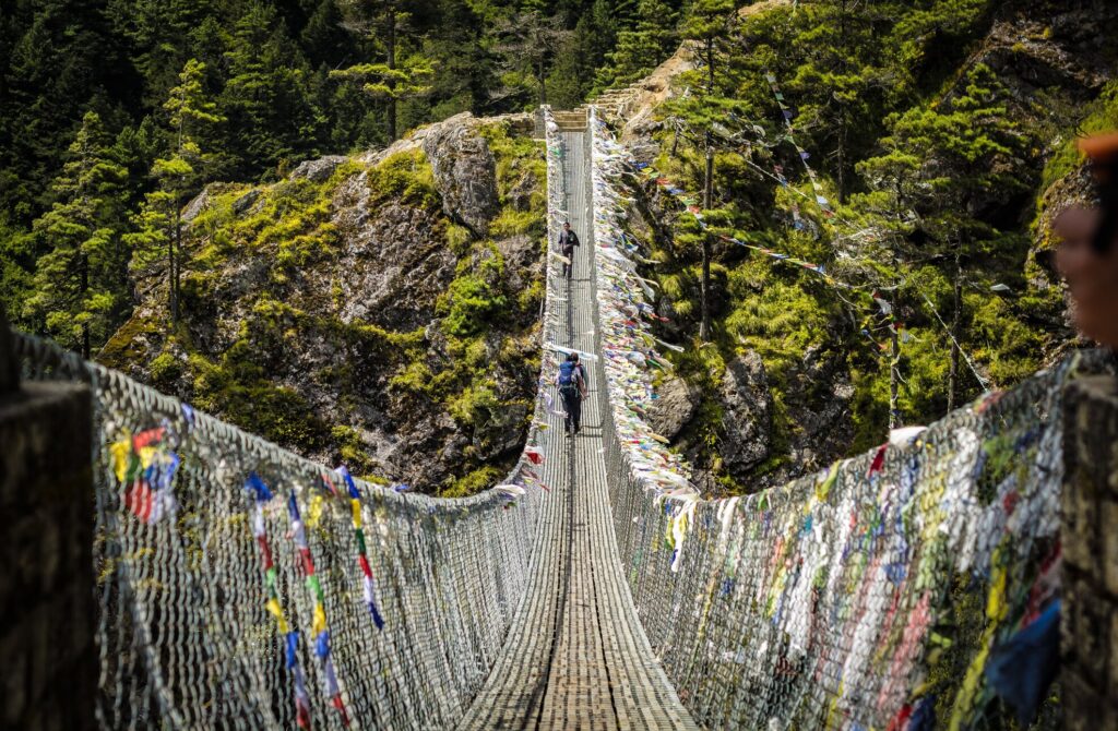 An early start to the day, we continue our journey alongside the banks of Dudh Koshi River heading past a series of suspension bridges including the famed Hillary Suspension Bridge. Continuing our journey through the vibrant hamlet of Thulo Ghamela, we enter lush green forests leading toward Bengkar. The next stretch of the journey takes us past Monjo and Jorsalle, with the latter marking our entry to Sagarmatha National Park. Leaving the riverbank, the trail quietly ascends through tranquil alpine forests to Namche. Overnight in Namche.
